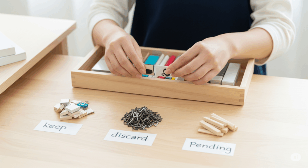 どうしても判断に迷う物は、無理に捨てなくて大丈夫です。「保留ボックス」を活用し、一時的に時間をおくことで、冷静な判断ができるようになります。このワンクッションが、後悔を防ぐための大切なセーフティネットになるのです。