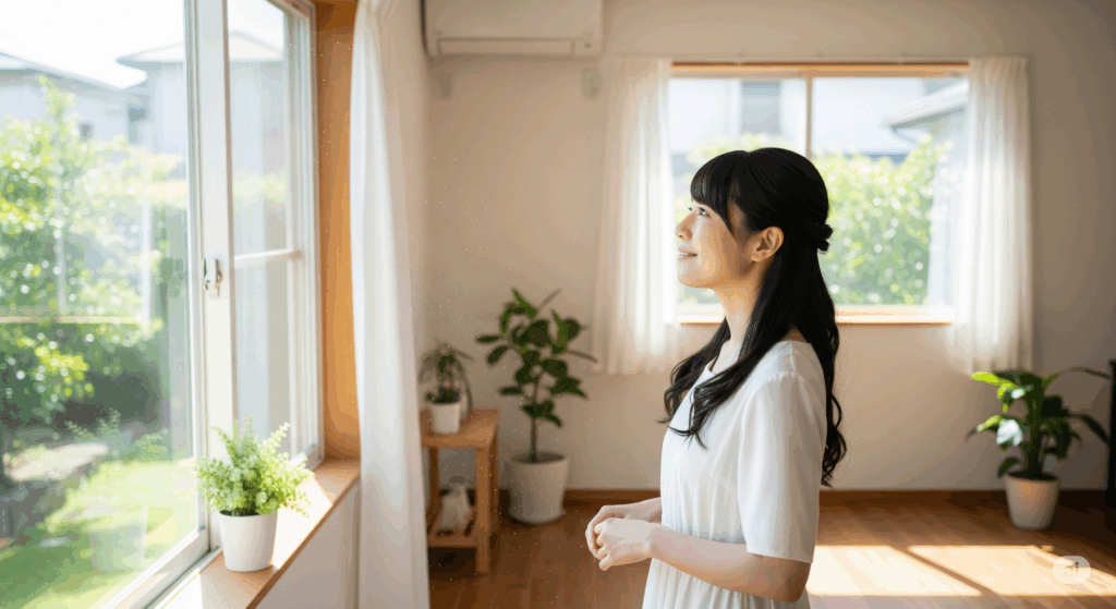 - 換気:基本中の基本ですが、最も効果的です。朝起きたら家の窓をすべて開け放ち、新鮮な空気と太陽の光をたっぷり取り込みましょう。よどんだ空気を外に出すだけで、空間のエネルギーがガラリと変わります。