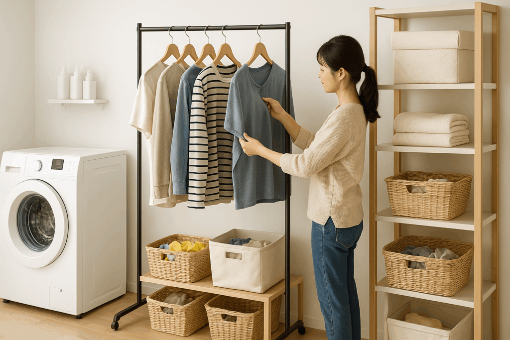 ハンガーにかけてそのままクローゼットへ戻す方法や、狭い洗面所やリビングでも圧迫感のないラック選びなど、ちょっとした工夫で暮らしは変わります。