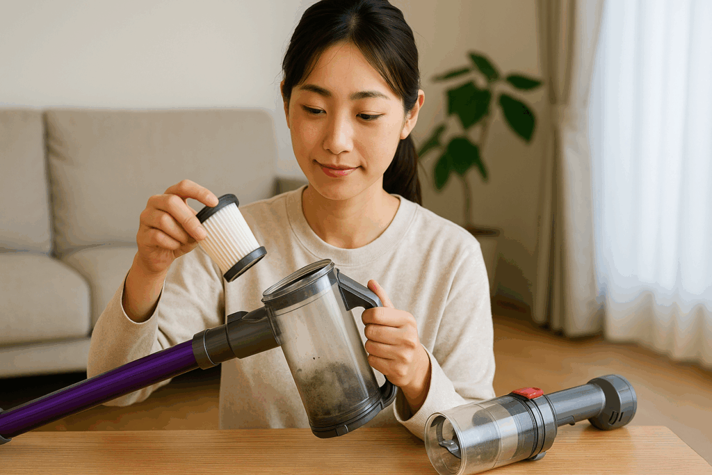サイクロン式はランニングコストがかからない反面、ダストカップやフィルターの洗浄をサボると吸引力が落ちたり、排気が臭くなったりします。
