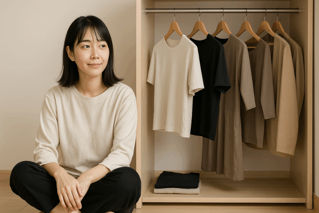 少ないと感じるかもしれませんが、この枚数があれば日々の生活は十分に回りますし、なにより服選びに迷う時間が圧倒的に減るのが魅力です。